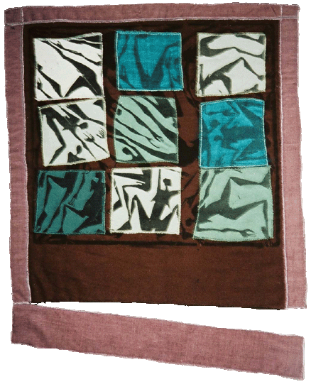 Verrutscht 2002 Textile Linollage (ca 30x25cm)