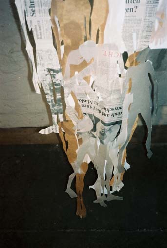 wurden ausgeschnitten aus verschiedenfarbigen und verschiedenartigen Papieren, verschieden beschrieben, beklebt und bedruckt.