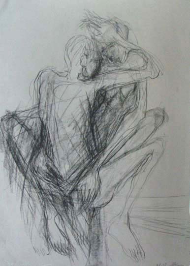 Gordisches Paar - grau 2001 Kreidezeichnung (80x60cm)