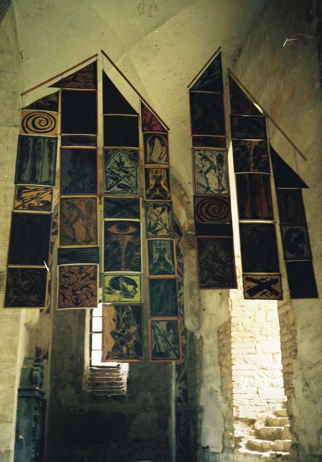 In mehreren Hausflächen zueinandergeordnet fanden sie ihren Platz in den romanisch gebogenen Seitengängen der Kirche. Die