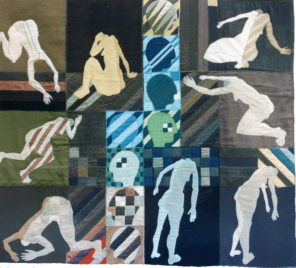 Bilder aus textilen Materialien appliziert, mit freier Stickerei vernäht