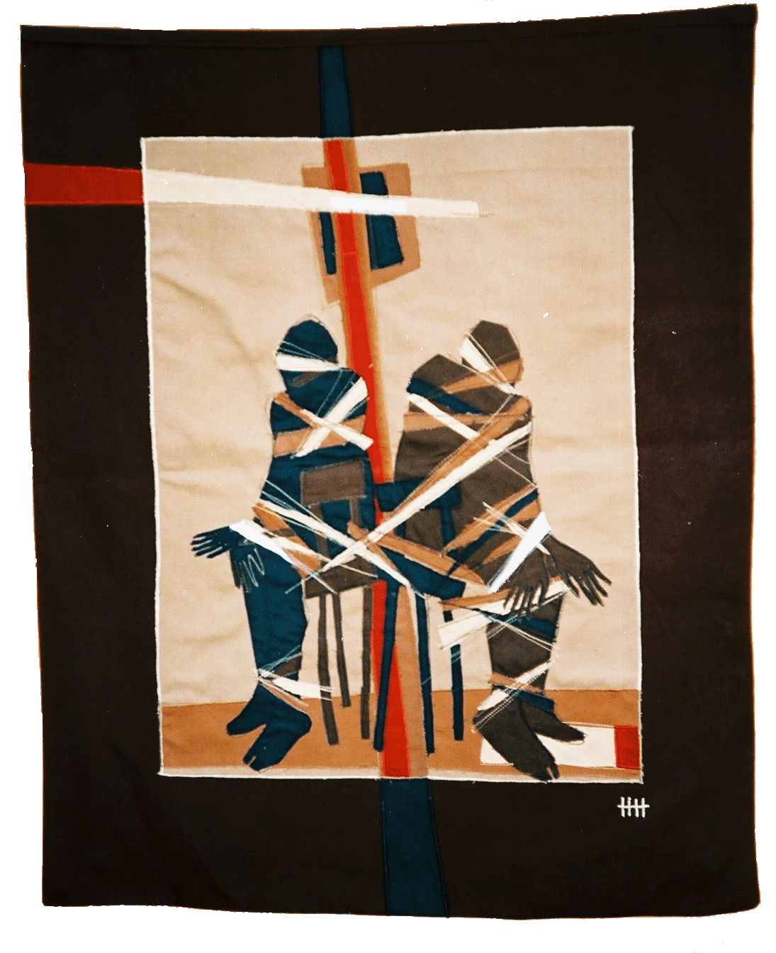 Bilder aus textilen Materialien appliziert, mit freier Stickerei vernäht