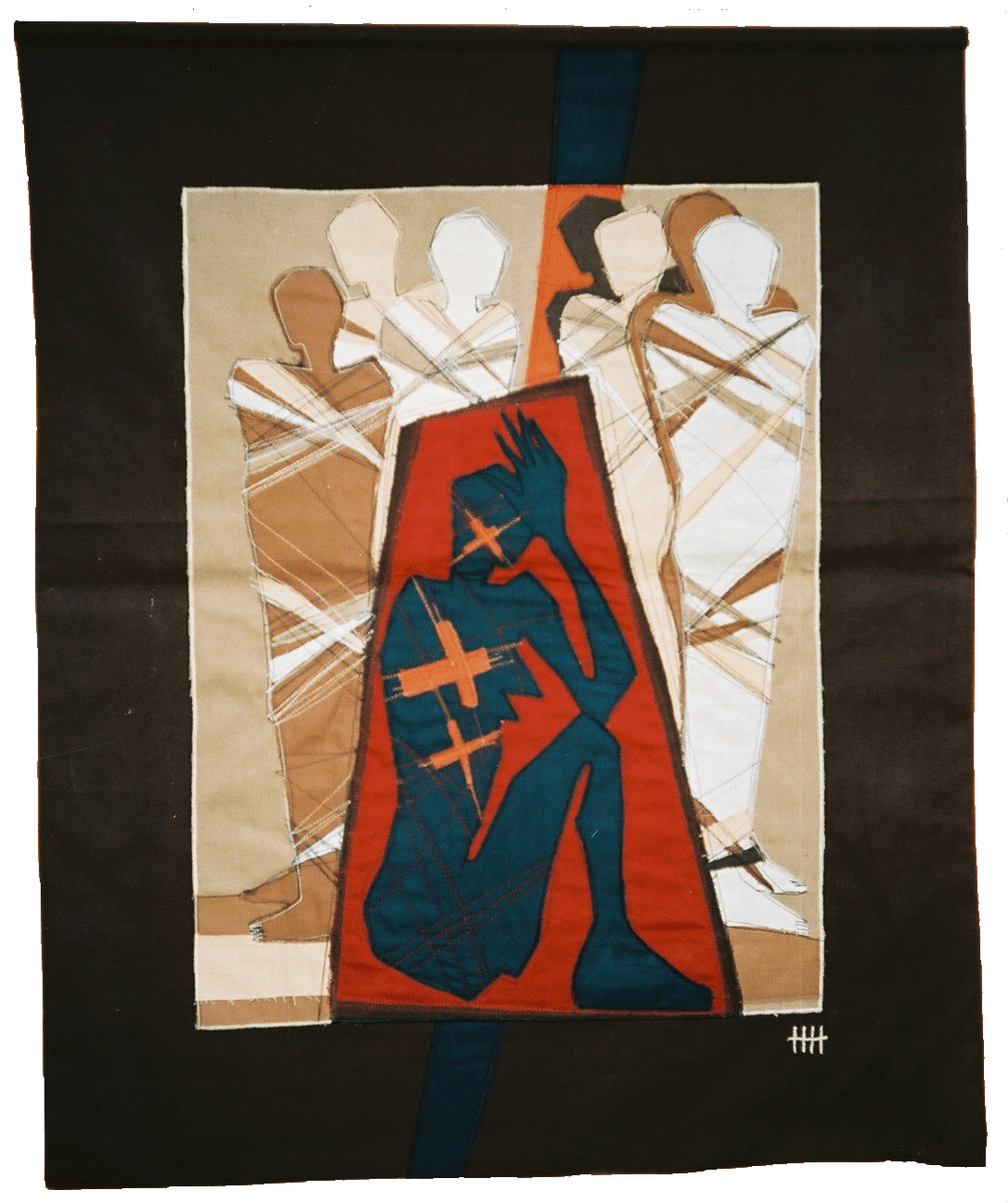 Bilder aus textilen Materialien appliziert, mit freier Stickerei vernäht