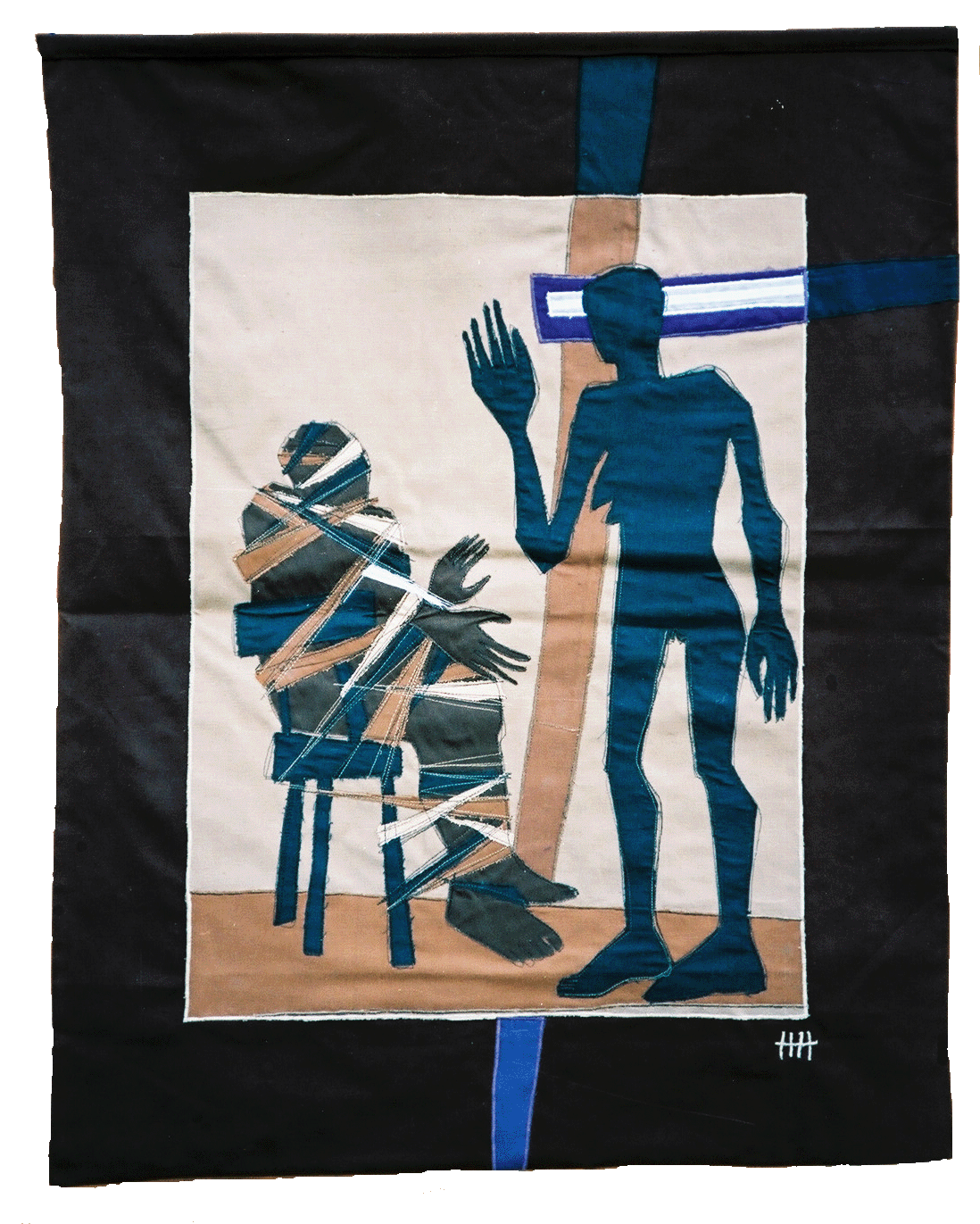 Bilder aus textilen Materialien appliziert, mit freier Stickerei vernäht