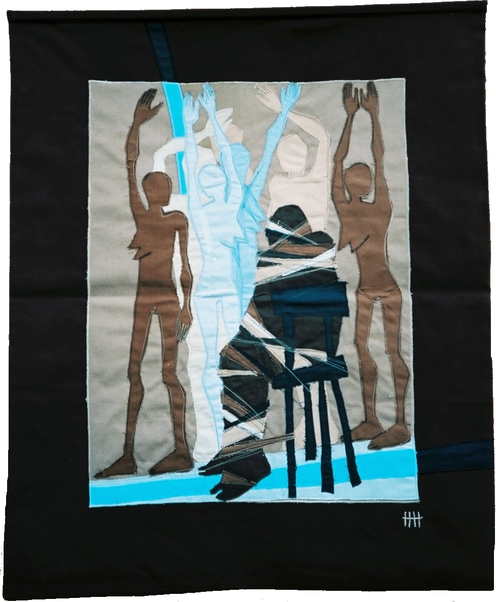 Bilder aus textilen Materialien appliziert, mit freier Stickerei vernäht