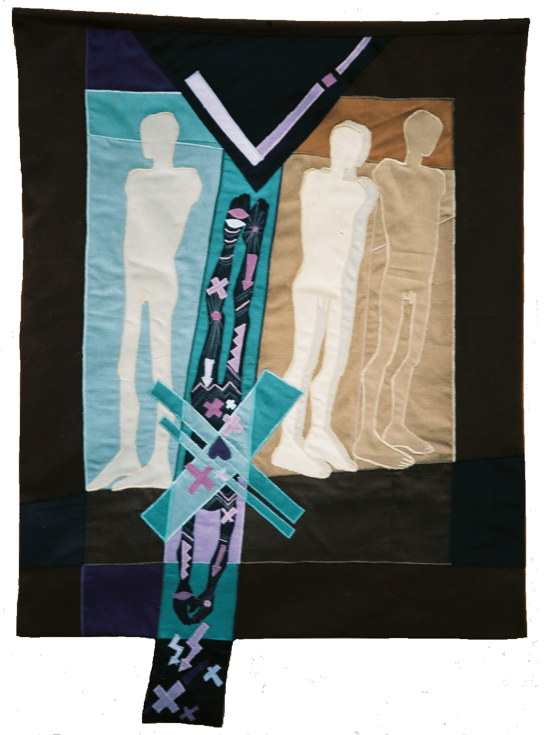 Bilder aus textilen Materialien appliziert, mit freier Stickerei vernäht